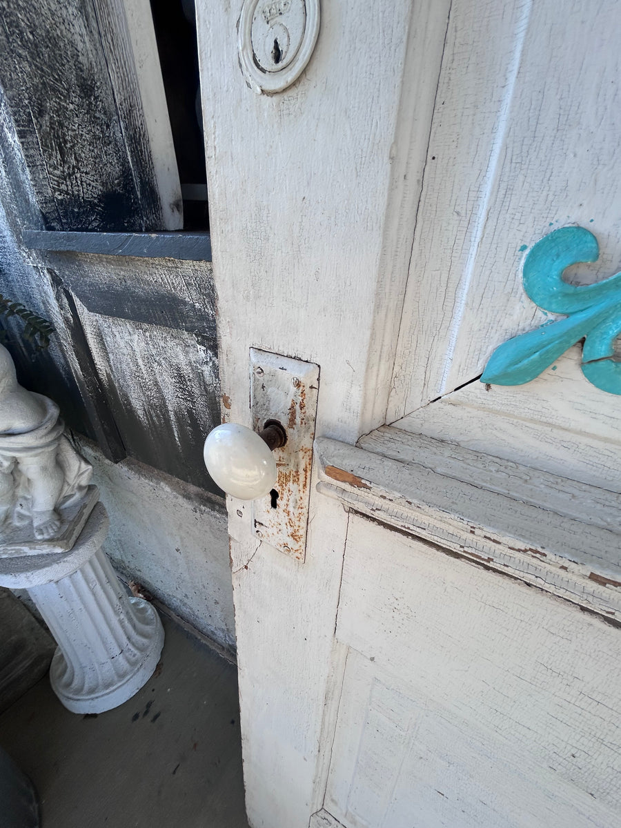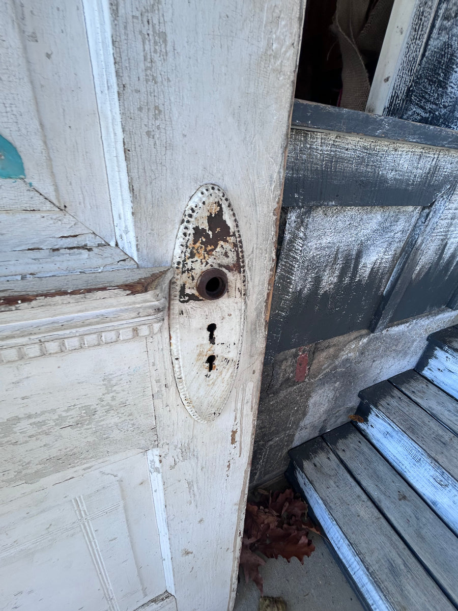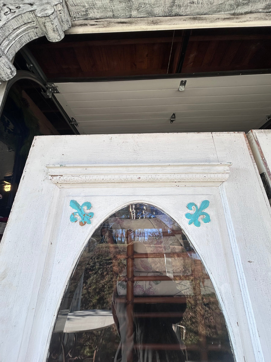 32” antique oval glass entry doors. Price listed is per door. The door on the left has a beveled glass window and it measures 32 inches wide, 80 inches tall, and 1 3/8 thick. The door on the right has it original wavy glass and measures 32 inches wide, 80 inches tall, and 1 3/8 thick.