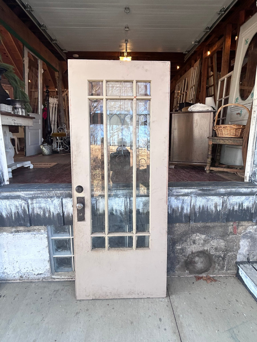 Beautiful 32” Beveled Glass Antique Entry Door. This door measures 32 inches wide, 80 inches tall, 1 3/4 inches thick.