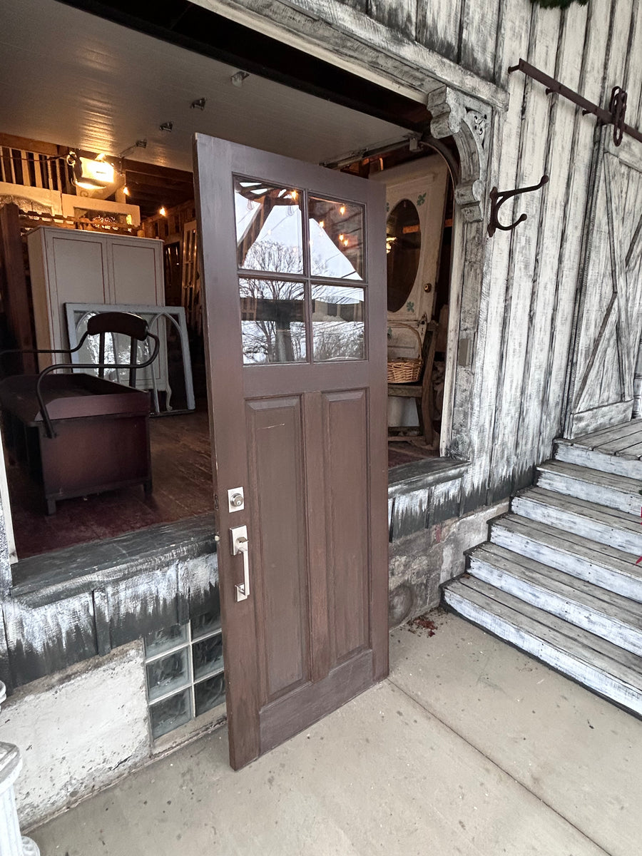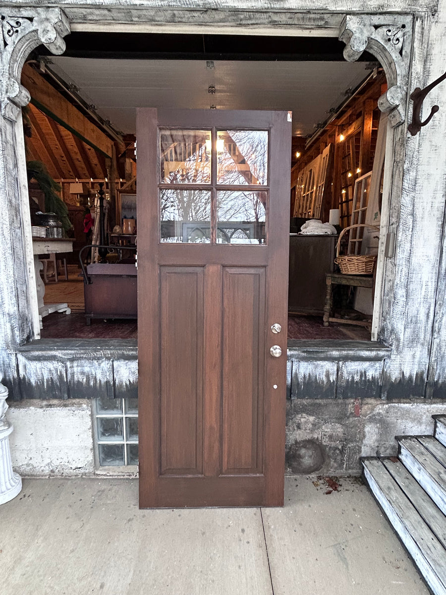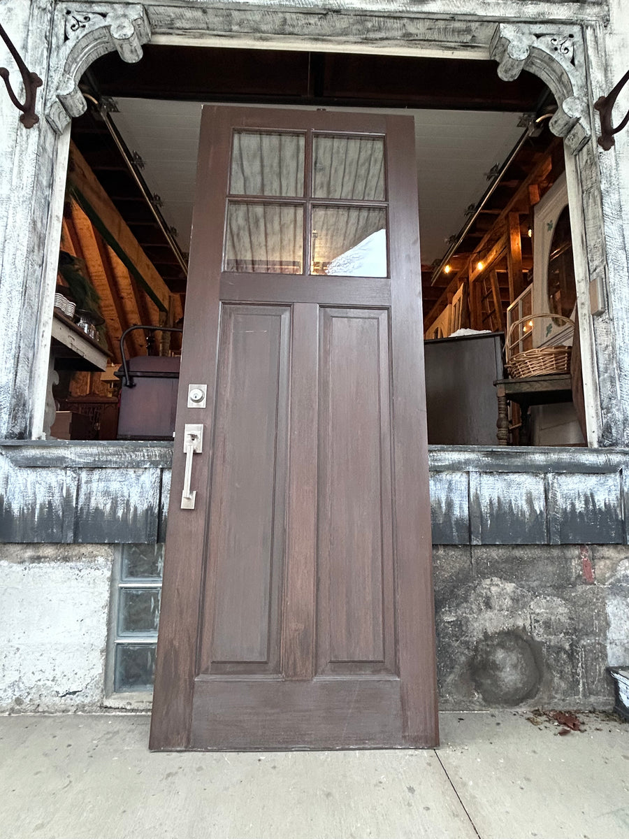 This door is in overall great condition. It measures 35 3/4 inches wide, 95 inches tall, and 1 3/4 inches thick. the windows are double pane glass. Unfortunately, we do not have the key for the deadbolt.