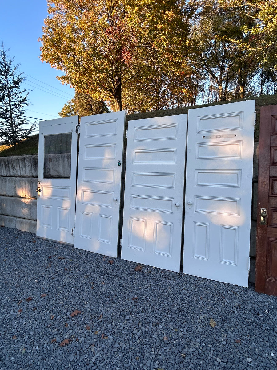 Door A Entry door measures 39 7/8 inches wide, 90 inches tall, 1 1/2 thick. $300. (This is also the white door pictured by itself in a few of the photos)