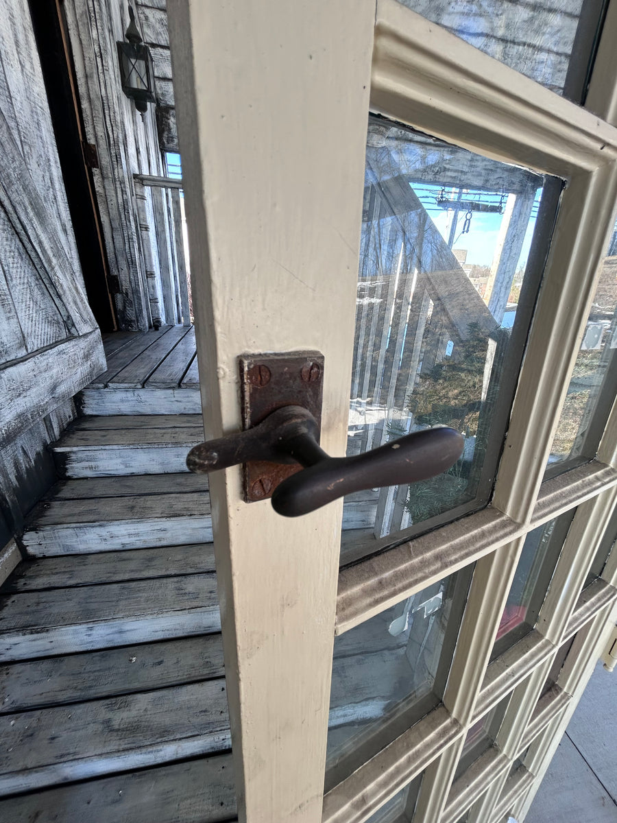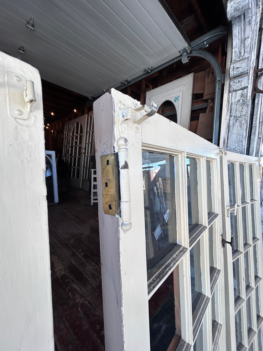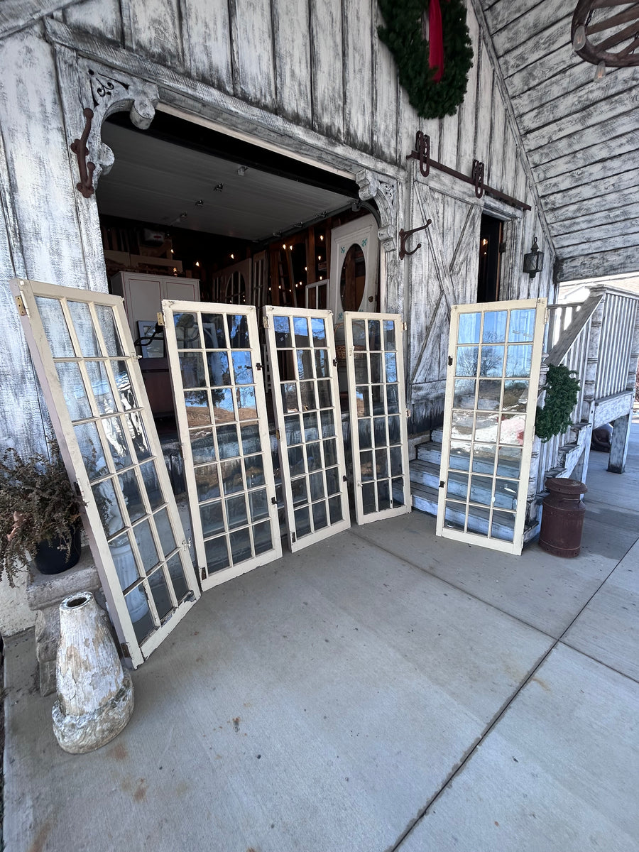 The price listed is for one window. Three of the windows are 24 1/2 inches wide and two of them are 22 5/8 inches wide. They all measure 71 3/4 inches tall and 1 3/4 inches thick. Please note the third window from the left has two pieces of glass missing-this can easily be replaced and we can direct you where to go for this service if local.
