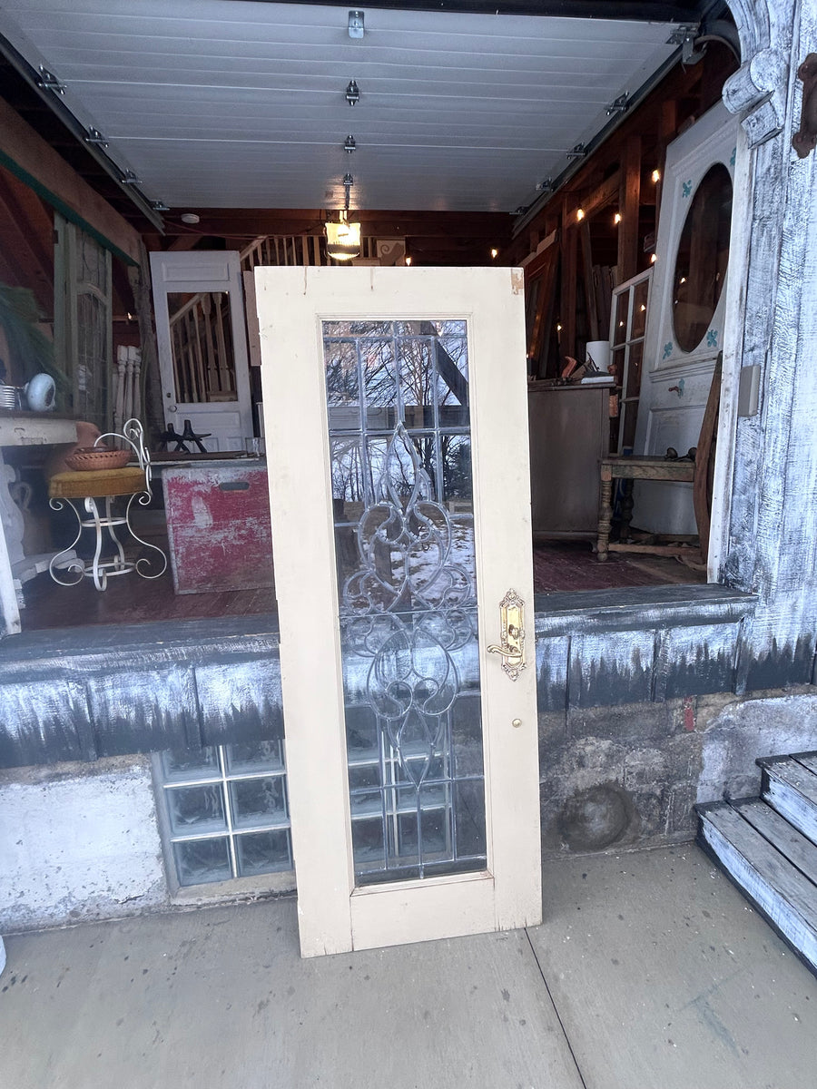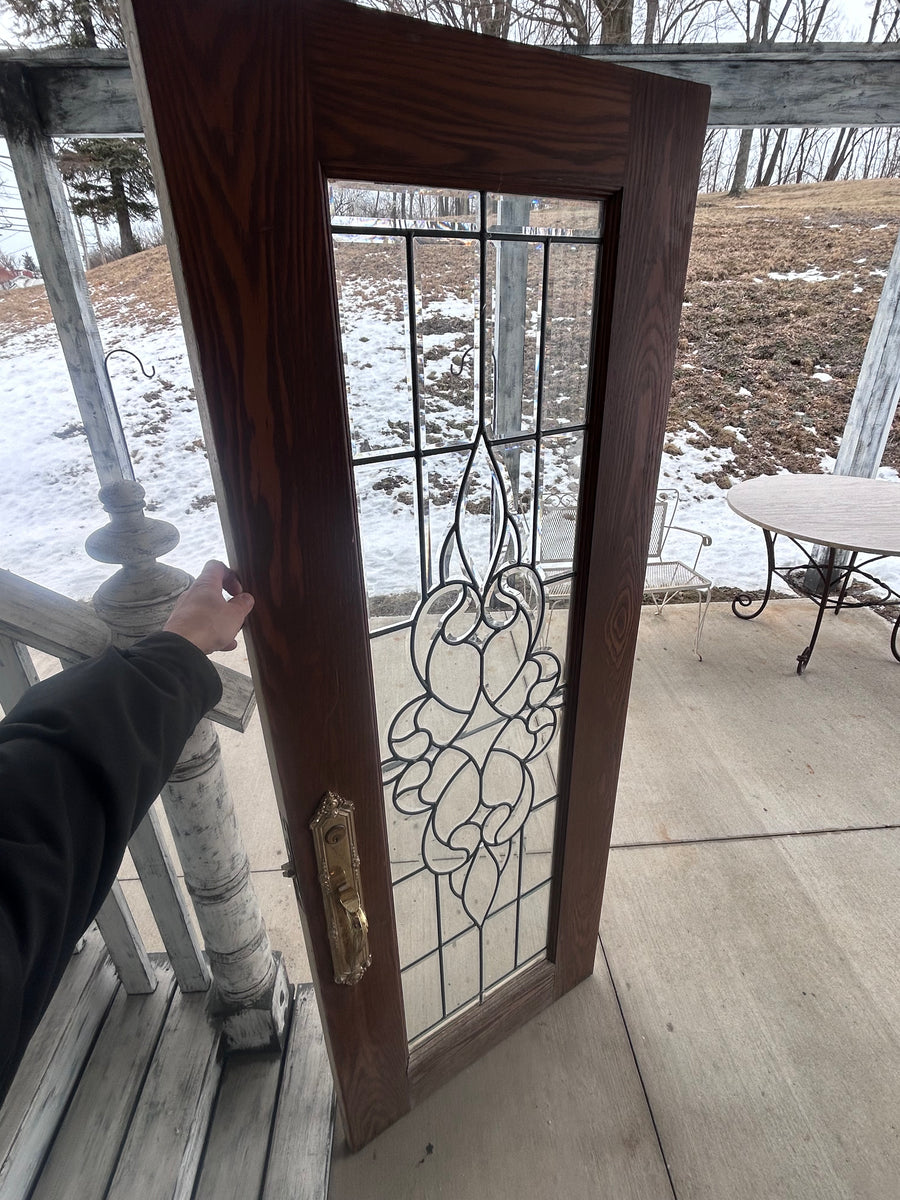 Solid Oak 30” Exterior Door w/Beveled Leaded Glass Window