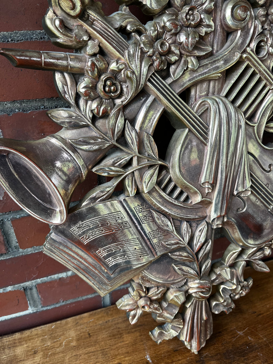 Vintage Mid Century Syracuse Ornamental Co Musical Bronze Wall Plaque