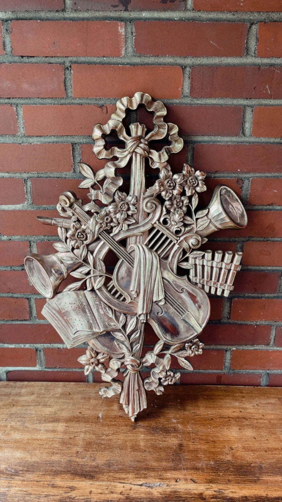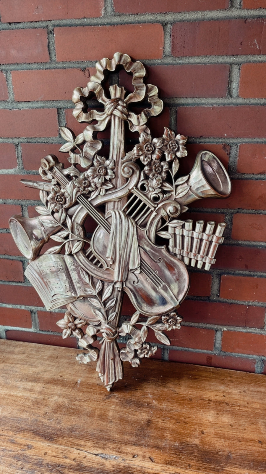 Vintage Mid Century Syracuse Ornamental Co Musical Bronze Wall Plaque. Measures 27” x 18”.