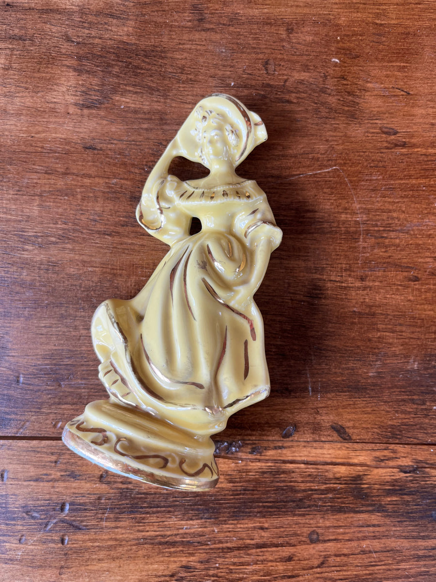 Vintage Victorian style woman. Measures 7” tall and 4” wide. This vintage Victorian style woman figurine stands at 7 inches tall and measures 4 inches wide. With its intricate design and elegant details, it adds a touch of old-world charm to any decor.